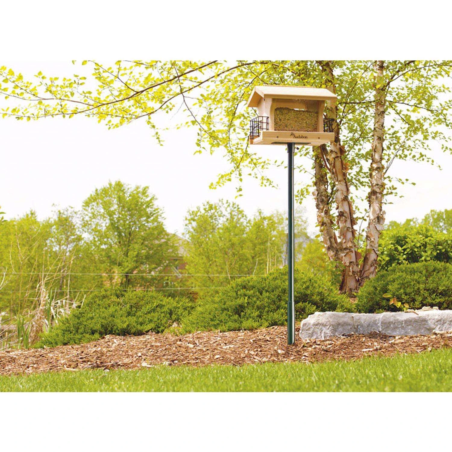With this birdhouse, you are not only enhancing your garden but also offering your feathered friends a cozy home. Wonderful gift for any bird or nature lover and perfect addition to your deck or patio. To hang this birdhouse, simply attach the ring hole to a desired location with rope or hook. Featuring an easy open back for cleaning, it can be cleaned out per season to make room for the next house guest. With this birdhouse, you are not only beautifying your garden but also offering your feathered friends a cozy home. Ground socket provided for positioning and mounting hardware Deep hunter green color-neutral and eye appealing Works with all bird and platform feeders