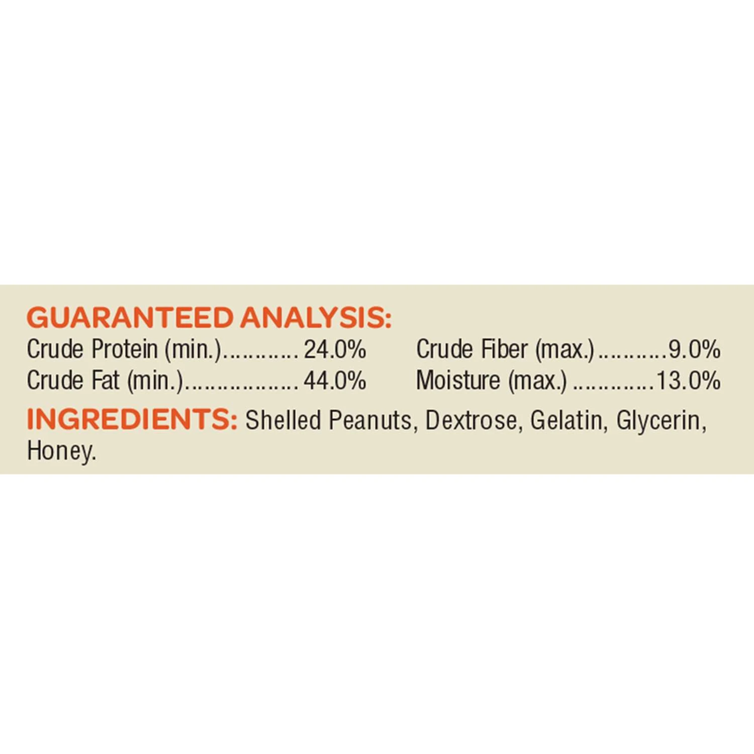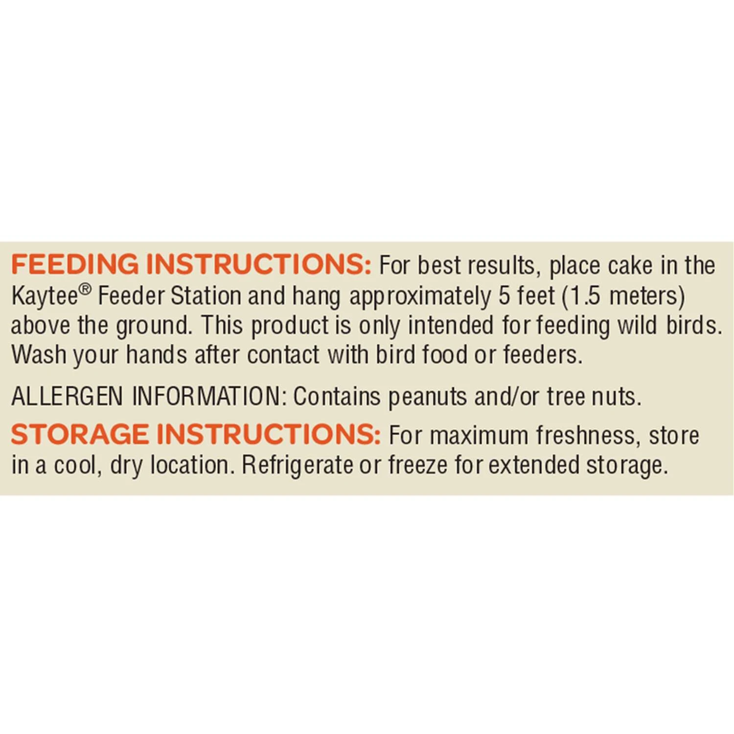 Kaytee Peanut Cake Wild Bird Food makes delivering your feathered friends their favorite treats easy and convenient. Made of tasty ingredients that backyard birds enjoy. Just slip the seed cake into a Kaytee Cake Feeder for convenient feeding. There’s no feeder cleanup or removal of old seeds to worry about. Seed cakes last longer than loose seeds and birds can’t push loose seeds out of the feeder, so there’s less waste. Excellent source of energy and protein Seed cake slips into a Kaytee cake feeder Easy, convenient feeding for a variety of birds Contains shelled peanuts, dextrose, gelatin, glycerin, honey Attracts woodpeckers, nuthatches, jays, towhees, cardinals, indigo buntings and more Crude protein (min) 24.0%, crude fat (min) 44.0%, crude fiber (max) 9.0%, moisture (max) 13.0% For best results, hang approximately 5 feet above the ground