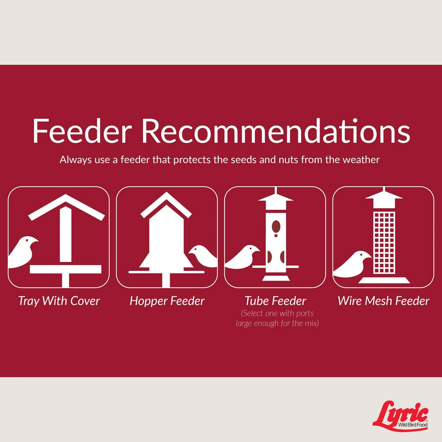 Lyric fruit and nut wild bird food contains no fillers and provides high energy. Attracts chickadees, robins, orioles, blue jays, titmice, buntings, cardinals, grosbeaks, towhees, nuthatches and cedar waxwings. Contains shelled peanuts, almonds, cashews, pecans, steamed crimped corn, black oil sunflower, sunflower kernels, Valencia peanuts, pistachios, dried cranberries, shelled pumpkin seed and raisins. Gourmet blend of ingredients Stay fresh technology inside No fillers for less waste