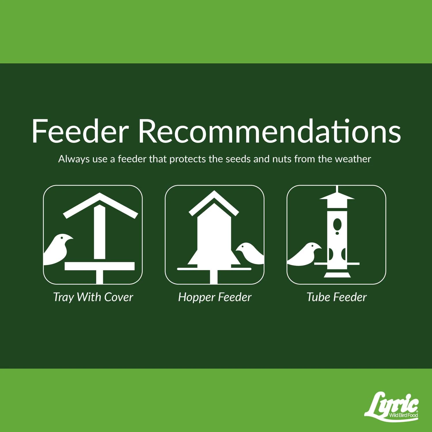 Lyric fine tunes is a custom cut, no waste mix. All the shells and hulls are removed from the fine tunes nuts and seeds. The mix also does not contain fillers. The smaller pieces flow smoothly in all size feeders. Smaller beaked birds, especially younger birds, will have an easier time eating Lyric Fine Tunes. Hand-crafted, premium mix with all-natural nutrition to attract the widest variety of birds Finely cut blend, for smaller beaks – especially younger birds Stay fresh technology inside 6 nutritional ingredients; not recommended for domestic (caged) birds Finely cut ingredients flow easily in feeders of all sizes