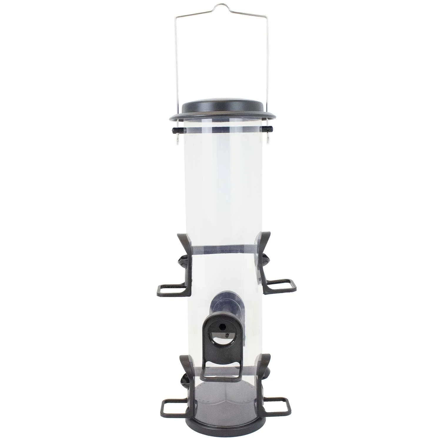 With the Perky-Pet Black 2-in-1 XL Tube Feeder, you can satisfy the appetites and preferences of any bird species that visits your backyard! With the feeder’s 2-in-1 Swivel Ports, you can easily switch from Nyjer to mixed seed or any other seed type with a simple swivel. Throughout the year, you can easily change the ports as needed! With more seed options to choose from, you’ll be able to attract more species of birds to your yard. The XL-sized feeder boasts a 4 lb capacity for seed or Nyjer / thistle, which is sure to keep your backyard birds well fed. Plus, you’ll be able to feed a large flock of birds at once with the six feeding ports, each of which is paired with a comfortable U-shaped perch. With all those birds, you’re in for a spectacular view! The 2-in-1 Tube Feeder is constructed of shatter-resistant plastic to ensure durability. The clear plastic also allows you to easily monitor seed levels so you never run out during peak feeding times. 2-in-1 swivel ports adjust to serve seed or Nyjer Six ports with perches allow multiple birds to dine at once Easily monitor seed levels through the clear plastic seed tube Attract more birds with multiple seed options