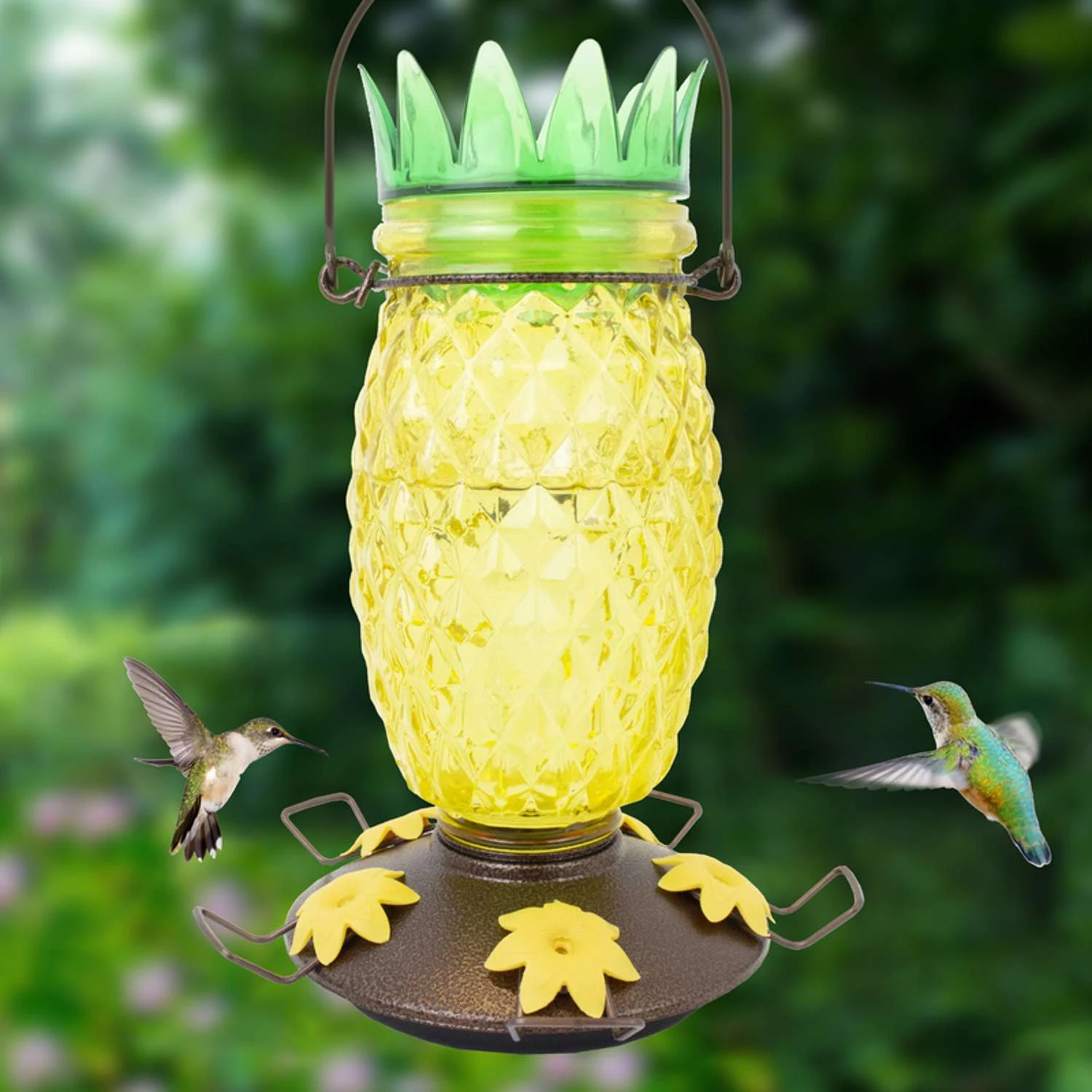 Perky-Pet Hummingbird 28 Oz Glass/Plastic Pineapple Nectar Feeder 5 Ports