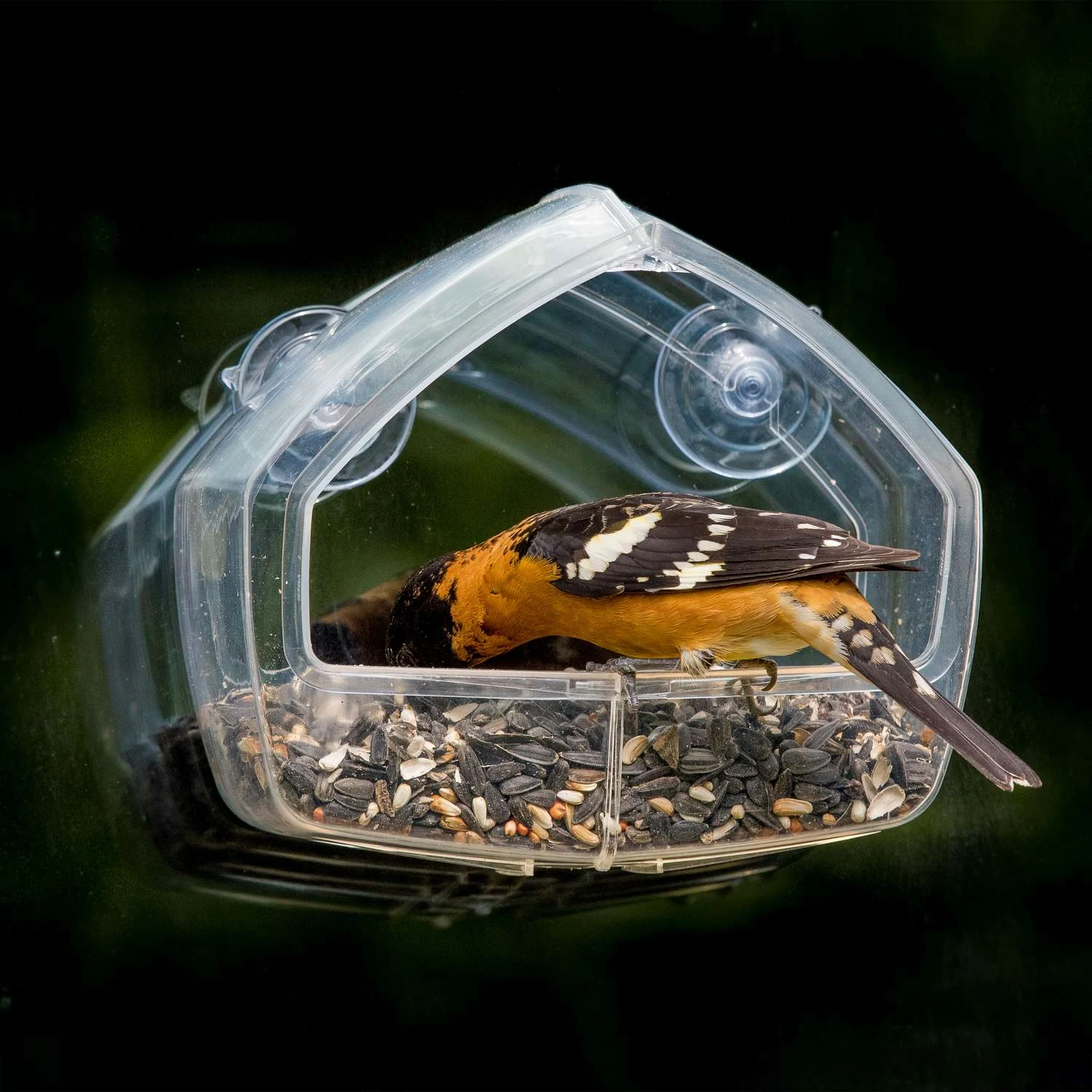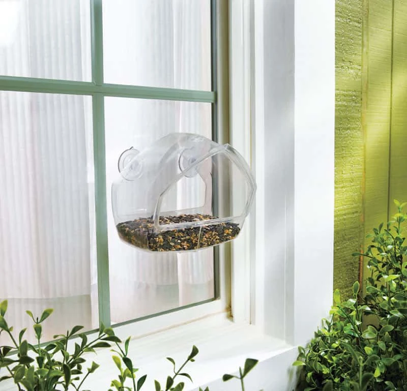 By attaching this feeder to the outside of any window with the included suction cups, you can enjoy closer and more frequent bird sightings – all from the comfort of your home! With food for them and fun for you, this feeder promises hours of enjoyment as you watch your favorite backyard birds eating and flying about right outside your window. The clear design makes it easy to see the action from any angle. Birds will love the wide opening which provides plenty of space for different sizes of birds and allows them to hop in and out of the feeder easily. Your feathered friends can perch comfortably on the feeder’s ledge or stand directly in the seed tray. The hooded tray will protect your birds and help keep seed dry. For your convenience this feeder is also easy to use. Simply attach the suction cups to a clean window – you may need to moisten the cups for better suction. Attaches directly to your window for up-close bird watching Clear design allows for better bird feeding views Wide opening accommodates a variety of birds and allows for easy filling Birds can perch on the ledge or stand in the seed tray Suction cups stick securely to any window