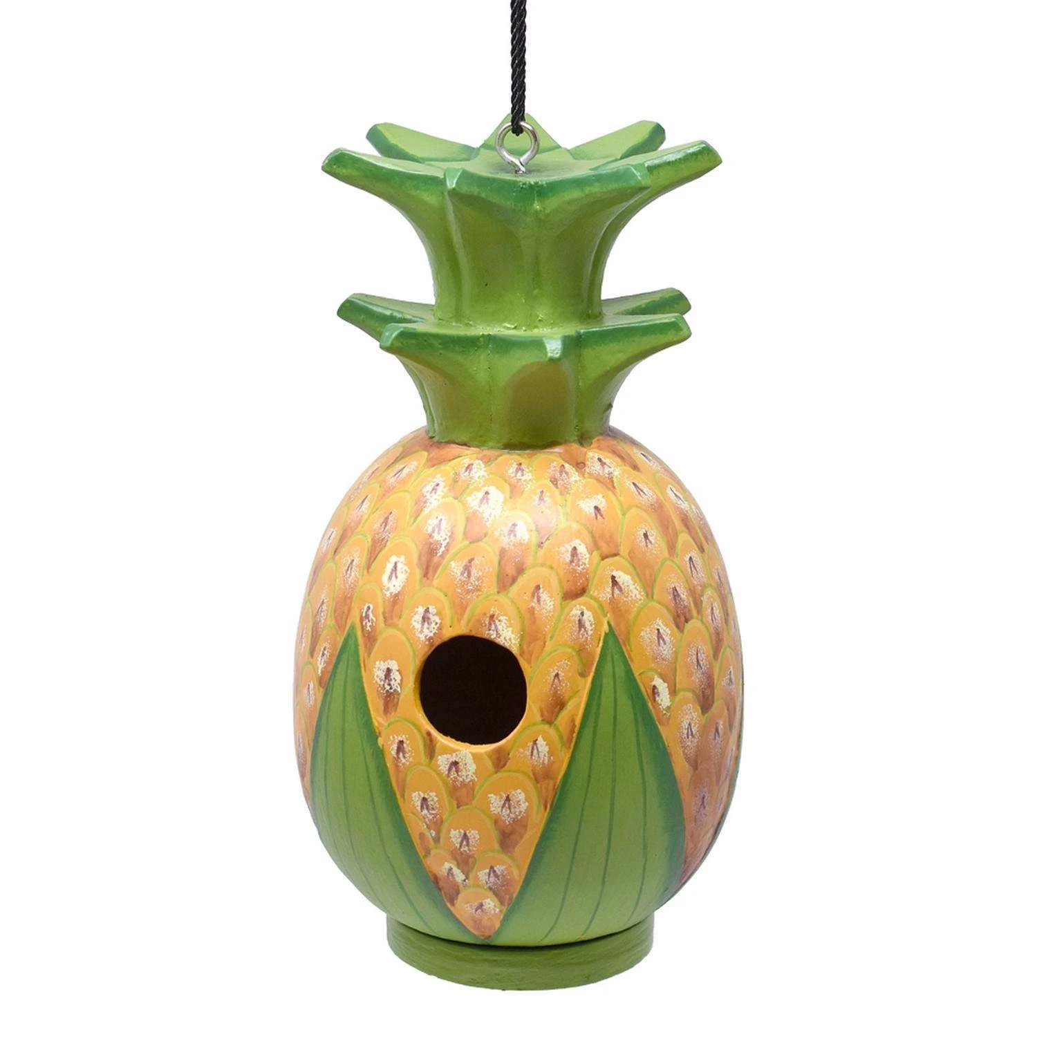 Songbird Essentials adds color & whimsy to any garden with our beautifully detailed wooden Bird Houses that come ready to hang under the canopy of your trees. Hand-carved from albesia wood, a renewable resource, each Bird House is hand painted with non-toxic paints and coated with polyurethane to protect them from the elements. The Gord-O design is the perfect blend of form and function These beautiful pieces of folk art provide excellent shelter for a variety of different songbirds We have included hangtags featuring our green source and product care
