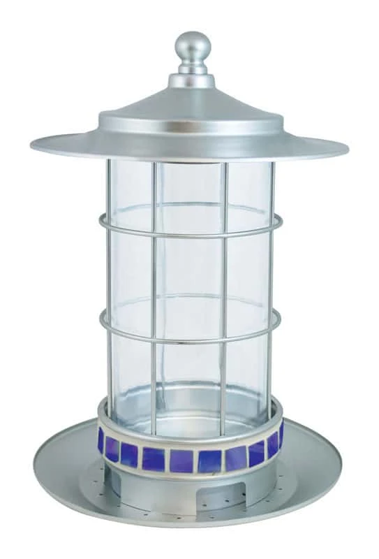 Enjoy songbird’s sweet melodies and beautiful colors with the Stokes Select trellis lantern bird feeder. The trellis lantern serves any seed so you can Choose Your Birds, simply flip the plastic tube insert to instantly convert this sunflower and mixed seed songbird feeder into a thistle finch feeder. The wide top opening makes refilling easy and the removable tube makes cleaning a breeze. Its 2.7 lb. seed capacity keeps hungry songbirds and finches happy and coming back for more. With a decorative top design, bronze metal finish and ornate satin brass metal band detailing, the trellis lantern is sure to make a stylish splash in your backyard. Brushed silver metal and blue tile mosaic design Strong and durable High quality material